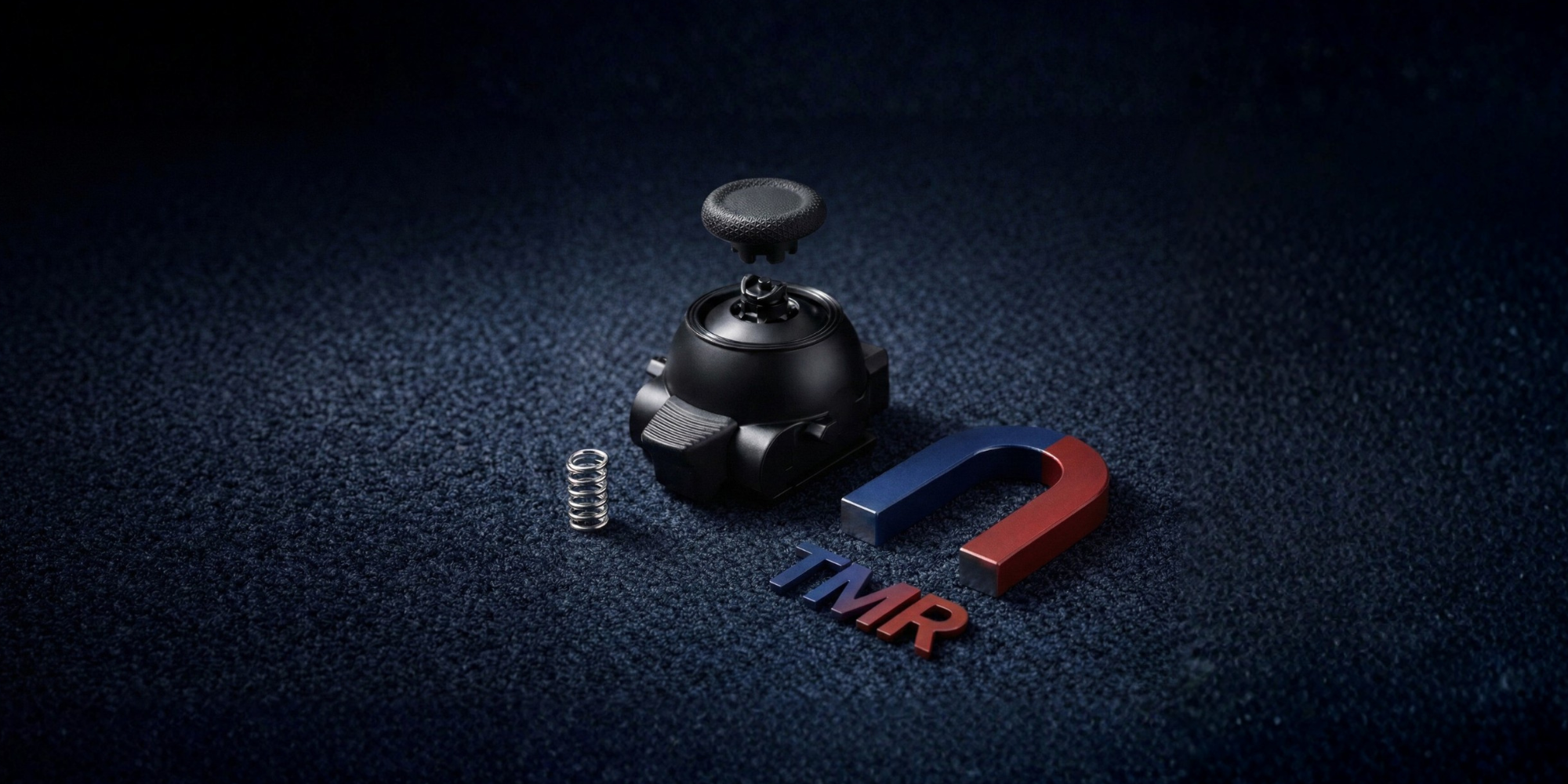 TMR (Tunneling Magnetoresistance) sensors are one of the most advanced joystick technologies available. They use magnetic sensing to detect extremely small thumbstick movements with high precision.
